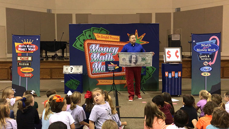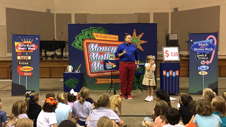 This assembly on math is on a topic everyone loves: money! By focusing on money, “Money Math Mania” instantly solves the problem of how to show kids math is useful in everyday life.